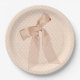 Peach Bow tema de la ducha de bebé con acento de proa de gingham en un fondo de polka-punto. Acento circular
