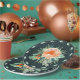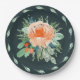 Una acuarela de flores elegantes en tonos de melocotón a naranja recortada con follaje verde verde azulado a jade y una correa de hojas bordea el borde exterior de estas placas de papel - disponible en 2 tamaños. Hermoso para fiestas de cumpleaños, duchas de novias, fiestas de jardín, recepción de bodas o cualquier evento especial. **TIP: Haga clic en el botón PERSONALIZAR para CAMBIAR el color de fondo verde azulado oscuro. COORDINACIÓN de invitaciones, servilletas y más disponibles —> http://bit.ly/2VebyjV <—