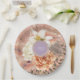 Sirva a sus huéspedes con estilo con estos platos de boda floral de melocotón y lilo personalizados con un moderno monograma. El diseño se caracteriza por sus rosas de melocotón acuático, sus lirios blancos, su pasto pampas y su vegetación, acentuada por un círculo lilaco para las iniciales. Ideal para recepciones de bodas, cenas de ensayo, duchas de novias o fiestas de compromiso. Personalizar con su monograma para crear un keepsake único. En nuestra colección encontrará servilletas, embutidos, menús e invitaciones para una celebración bien coordinada.