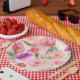 Plato De Papel Peach Peach Pink Purple Floral acuarela