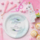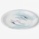 Pluma de pavo real. Estos elegantes platos de plumas de pavo real violeta están diseñados con dos plumas de pavo real que se unen a una tipografía elegante y a un fondo acuarela. Personalice este diseño con su nombre, fecha de boda y cualquier otro mensaje de personalizado que desee incluir. El color de fondo está establecido en blanco, aunque puede elegir el color de relleno que desee.