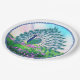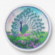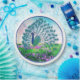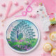 pavo real de bonito en flores rosadas con plumas y marco de joyas.