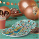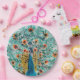 Hermoso arte de pájaro con un pavo real mostrando sus plumas y fácilmente personalizado con texto. Este colorido ave de guijarros verde esmeralda y turquesa es de mi pintura de vidrio original. ©Annabel Potter