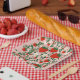 Platos de pegatinas de fiesta de fresa con enredaderas florales rosadas y rojas