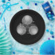 Un símbolo de riesgo biológico hecho en tono gris. El círculo interior fue reemplazado por una cadena en blanco y negro. Se colocaron tres cráneos negros en la intersección del símbolo. En el centro se coloca un símbolo de radiación negro y gris.