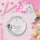 Dulce purpurina de plata de imitación y florido plato de papel de cumpleaños terrestre con un pingüino, follaje y flores. Este lindo plato de papel de primer cumpleaños de tierra firme es una gran adición a la fiesta de primer cumpleaños de tu niñita con temática de pingüino.