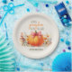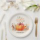 Celebra tu ducha de bebé en otoño con estos adorables platos de papel de "A Little Pumpkin is on the Way". Con una calabaza de acuarela dulce coronada con un arco rosado y rodeada de cálidos florales de otoño, estos platos personalizados le dan un toque festivo de temporada a su mesa. Perfecto para una ducha de bebé, se coordinan maravillosamente con la colección completa de pequeños fiestas de calabaza para una celebración acogedora y encantadora.