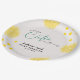 Esta pequeña preciosidad está en camino platos de papel de tema de limón y cítricos para baby shower con rodajas de limón en color amarillo y naranja