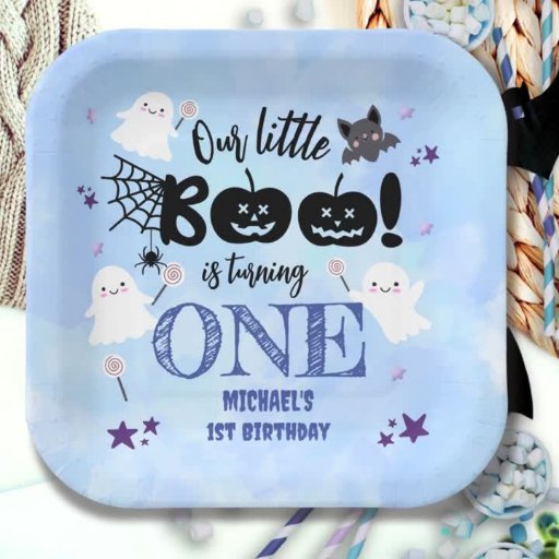 Plato De Papel ¡Pequeño Boo! Cute Blue Boy Halloween 1er cumpleañ
