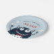 Diseñados para coordinar con nuestras invitaciones y accesorios para la fiesta de cumpleaños de Little Monster, estos platos de papel con temática monstruosa presentan un monstruo sonriente lindo con una corbata de arco rojo dapper, sobre un fondo azul cielo. Personaliza con un mensaje personalizado (mostrado con "Feliz Cumpleaños") y el nombre del niño de cumpleaños en el centro.