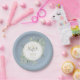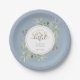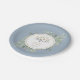 Pequeño Mr. ONEmaravilloso plato de papel de primer cumpleaños con elegante vegetación en un fondo azul chico y tipografía elegante. Diseñado por Thisisnotme©