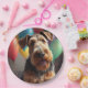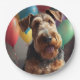 Un perro Airedale con diseño de cumpleaños de globos es una manera divertida y caprichosa de celebrar una ocasión especial con un amigo peludo de un amante del perro. Este diseño típicamente incluye un perro de Airedale terrier con un gorra de cumpleaños festivo y rodeado de globos coloridos y alegres.