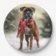 Plato De Papel Perro Boxer en Navidades de Nieve