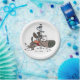 Plato De Papel Perro caricaturista atrapado en un polo con correa