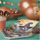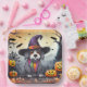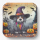Perro Guay en un gorra, calabazas sonrientes, arañas y murciélagos