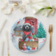 Una idea de regalo perfecta para tus amigos amantes de los perros, un perro lindo sentado en la nieve junto al árbol de Navidad y la casa de los perros es un regalo que debes tener para ti o tus amigos este Navidad.