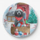 Plato De Papel Perro de perro caniche en la casa de perros de Nav