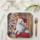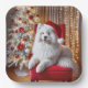 Plato De Papel Perro de Santa Samoyed en una silla roja
