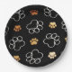 Plato De Papel Perro divertido PawPrints en las placas negras, de