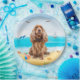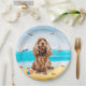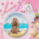 El perro lindo sentado en la playa es un regalo perfecto para alguien que ama esta raza de perro.