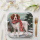 Plato De Papel Perro español de Bretaña en Navidades de nieve