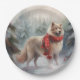 Plato De Papel Perro lappund finlandés en Navidades de nieve