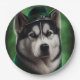 Plato De Papel Perro Malamute de Alaska con vestido de San Patric