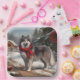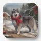 Plato De Papel Perro malamute de Alaska en Navidades de nieve