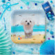 El perro lindo sentado en la playa es un regalo perfecto para alguien que ama esta raza de perro.