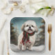 Plato De Papel Perro Malti Tzu en Navidades de nieve