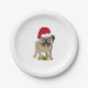 Plato De Papel Perro pug lindo en Navidades Santa Hat.