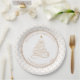 Personalice el servicio de mesa para su fiesta de Navidad anual. Hay texto circular con dos plantillas así que usted puede cambiar fácilmente todo el texto a sus propias palabras, nombre, inicial, o monograma. Este tema del navidad tiene un árbol de navidad afiligranado metálico de oro con las líneas y los remolinos curvados hermosos y una estrella en el top. El mismo árbol se repite en filas de la compensación en el blanco para un fondo del día de fiesta.