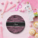 Patrón moderno de rayas de cebra de purpurina rosado (huella animal) (no purpurina real) con banda de cinta de diamantes negros (diamantes no reales) personalizado con su nombre regalos o regalos en monograma o sus iniciales o puede añadir su propio texto personal. Purpurinas de ideas de regalo de cebra para chicas, adolescentes y mujeres.