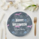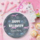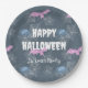Plato De Papel Personalizable de Halloween con murciélagos y arañ