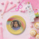 Plato De Papel Personalizado arcoiris simple foto de cumpleaños