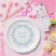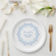 Plato De Papel Personalizado Azul Monograma Simple Floral Elegant