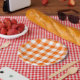 Cree su propio patrón de gingham naranja brillante cambiando el color de fondo. También puede cambiar el tamaño de la imagen y la orientación del patrón de gingham.