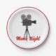 Placas de papel divertidas para los que aman todas las cosas las películas presentan una cámara de cine estilo trípode retro con texto rojo personalizable. Genial por la noche de cine. ¡Mira nuestra colección de artículos de cine y de fiesta!