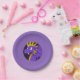 Diseño con ilustracion de diseño lindo chica de dragón morado y amarillo / cuento de hadas para niños con fondo morado