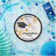 Placas de papel de graduación con tapón de graduación con tassel, diploma, estrellas de oro y el texto "Grado de felicitaciones" Añada su clase del año anterior y texto personalizado abajo o suprímase. Perfecto para fiestas de graduación y celebraciones.