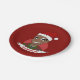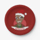 Placas de papel con un ilustracion de hombre afroamericano sonriente feliz con el gorra de Santa Claus; con plantilla de texto editable; diseño de vacaciones para Navidades con fondo rojo
