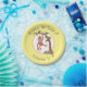 ¡Es hora de fiesta! Este adorable y feliz orangután de bebé le agregará algo de diversión a la jungla a cualquier fiesta. Dibujado en un bonito estilo de ilustracion personalizado sobre un fondo polka blanco y amarillo claro.