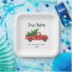 Crea una Placa de papel para Navidades personalizados, de inspiración vintage, que es perfecta para su cena o como un regalo atento. Estos encantadores platos de papel presentan un clásico camión de granja rojo con un árbol de Navidad recién cortado en la parte trasera. Las palabras "Feliz Navidad" están escritas en un tipo de letra festivo, y se puede personalizar fácilmente con un nombre, fecha o un mensaje especial para hacerlo único suyo.