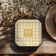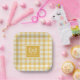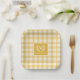 Plato De Papel Personalizado del Escudo de Yellow Gingham Monogra