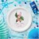 Flamingo Tropical Beach Birthday Party Personalizado platos de fiesta de papel desechable con follaje de hojas tropicales y texto personalizado. A los amantes de los flamencos divertidos les encantan los platos de papel y los productos fiestas a juego para niños, adolescentes y adultos. Cambia fácilmente cualquier texto que se ajuste a tu ocasión especial. Ideal para fiestas de cumpleaños, El día de San Valentín, aniversario y muchas otras posibilidades.