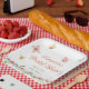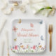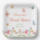 Personalizable ducha de novia platos de papel detalles sobre un ilustracion encantador y delicado de flores silvestres acuáticas y mariposas delante de la invitación. y un bonito patrón de flores silvestres y mariposas en la parte trasera