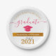 Plato De Papel Personalizado Graduado Fiesta Rosado Caliente/Oro