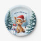 Plato De Papel Personalizado lindo Giraffe con Santa Hat y Snowma