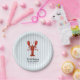 Disfrute de nuestros platos de papel de rayas azules hirviendo de langosta roja náutica personalizado.