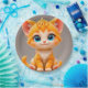 Adorable ilustracion digital con un alegre gatito personalizado naranja con grandes ojos azules expresivos y una encantadora pose, una cualidad radiante y vibraciones juguetonas.